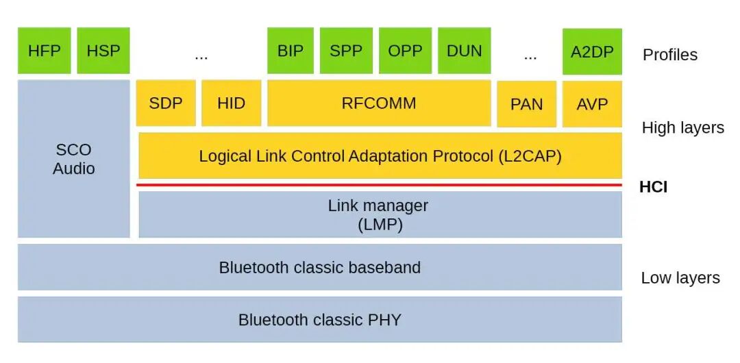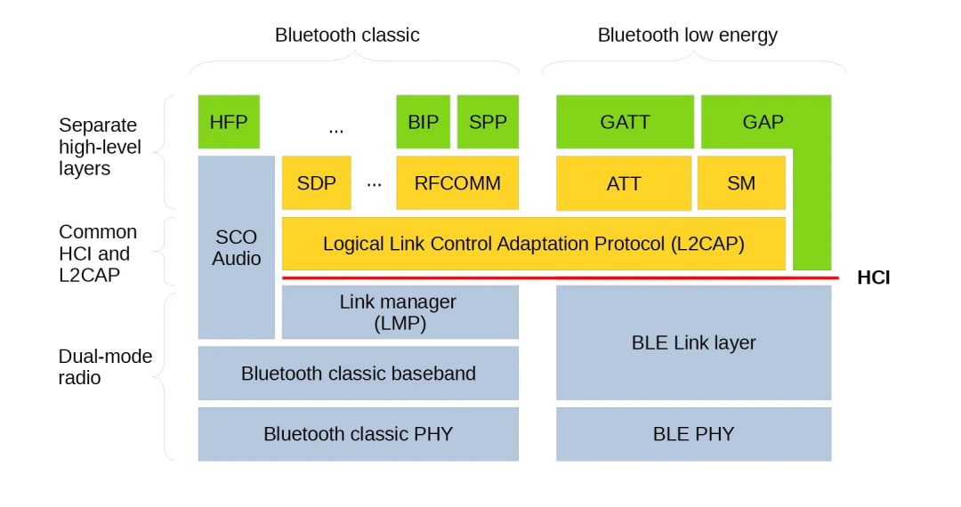 如何实现这一点? 关键在于两个协议栈都使用相同的 HCI 协议和相同的 L2CAP 层。