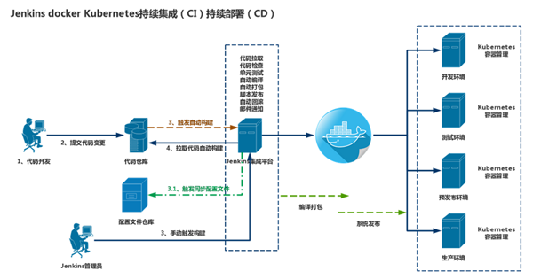 Jenkins 用Java语言编写,可在Tomcat等流行的servlet容器中运行,也可独立运行。通常与版本管理工具(SCM)、构建工具结合使用。