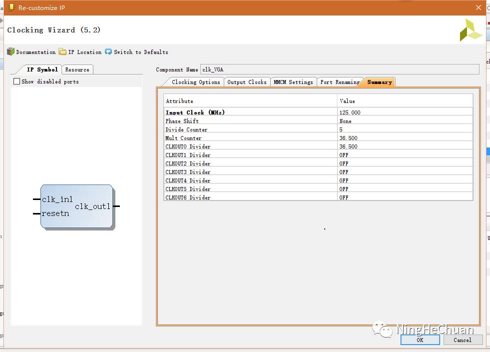 我这里选用的是640X480@60HZ分辨率显示,ZYBO的板子晶振是125Mhz,所以首先要先进行分频,我这里直接用Vivado调用PLL。还没有过用Vivado调用PLL的博客,现在总结一下吧,以防后面忘记。