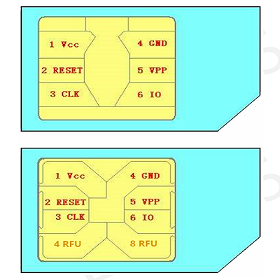 SIM卡主要由微处理器CPU,程序存储器ROM,工作存储器RAM,数据存储器E2PROM和串行通信单元组成。