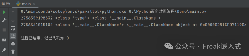 示例中,我们定义了一个自己的类型ClassName,c是它的实例(Instance),它的类型是 main.ClassName。Class 和 Type 均是指类型(Type),Class 通常用于普通用户使用 class 自定义的类型。Type 通常指 Python 的解释器 CPython 内置的类型。