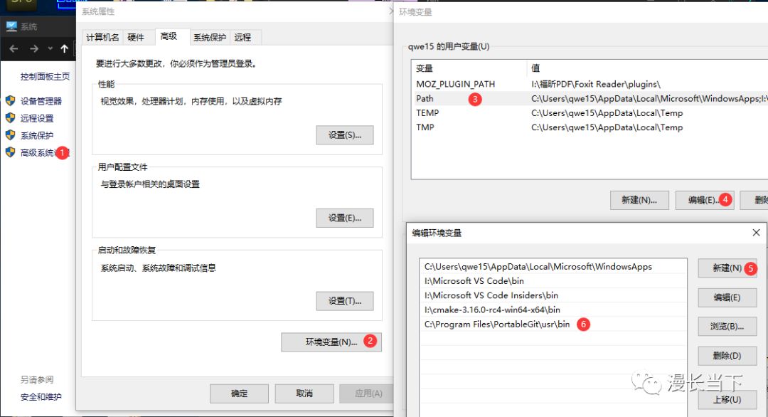 最后再将此目录添加到系统环境变量中就可以了,这里以win10为例,右键我的电脑然后点击属性,根据图9的步骤操作然后点击确定就行了,注意第三步一定是选择Path,这里只在用户中添加了,下面的系统变量中的Path最好也添加上,添加完成后,再次打开命令行,输入ssh,这时候一般都会出现前面图4的内容,表示ssh已经成功安装。