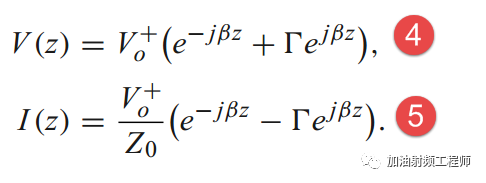 由传输线的电报方程,可以知道,传输线上的电压和电流表达式为: