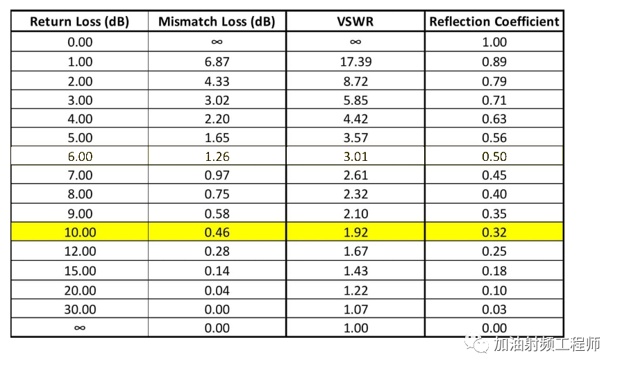 常规情况下,会看到驻波比的指标<2,即对应的回波损耗为10dB左右,失配损耗为0.46dB左右。