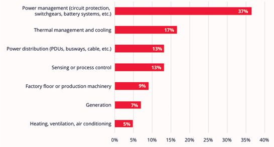 图3:2023年调查中关于电力系统设计或实施面临极大挑战的工业应用领域的受访者反馈(图源:Molex)