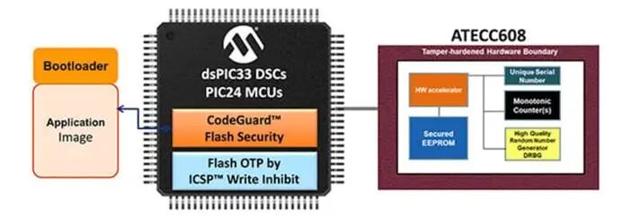 图 6:ATECC608或 TA100 等安全 *IC补充了 dsPIC33C DSC 和 PIC24F MCU 的安全功能,简化了安全嵌入式系统的实施。(图片来源:Microchip Technology)*