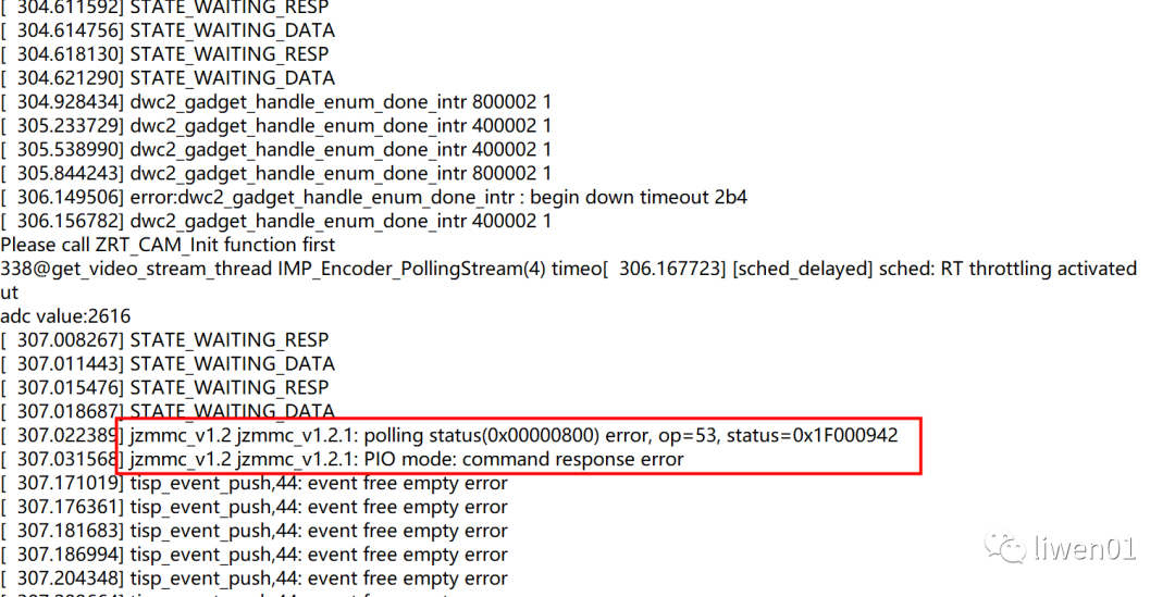 - 将kernel debug等级提高,再次重复上述操作,当插入UVC屏时,发现mmc 报错导致wlan0异常;