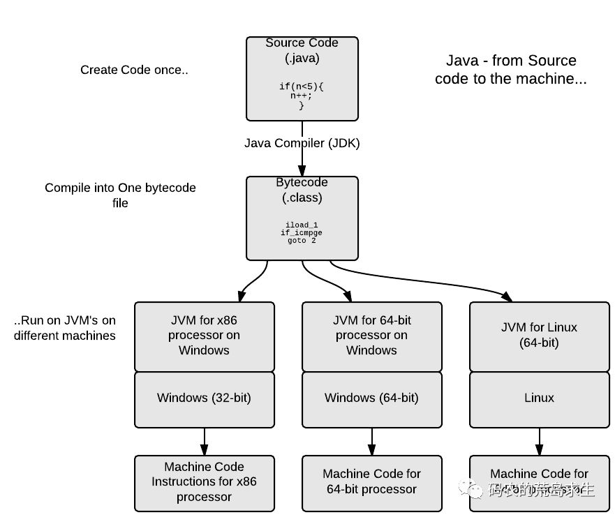 关于Java的一次编译到处运行如图所示: