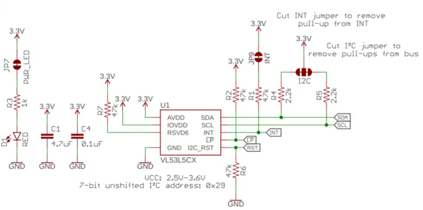 图6:VL53L5多区dToF传感器应用原理图(图源:Mouser)