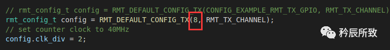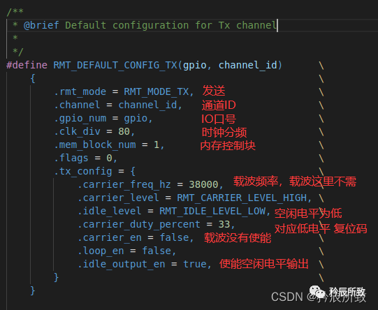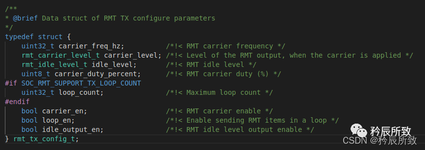 首先要了解的是一个结构体,发送配置的结构体rmt_tx_config_t: