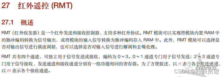 在乐鑫官方 ESP32-C3 芯片手册《esp32-c3_technical_reference_manual_cn》文档中对于 RMT 有详细的介绍: