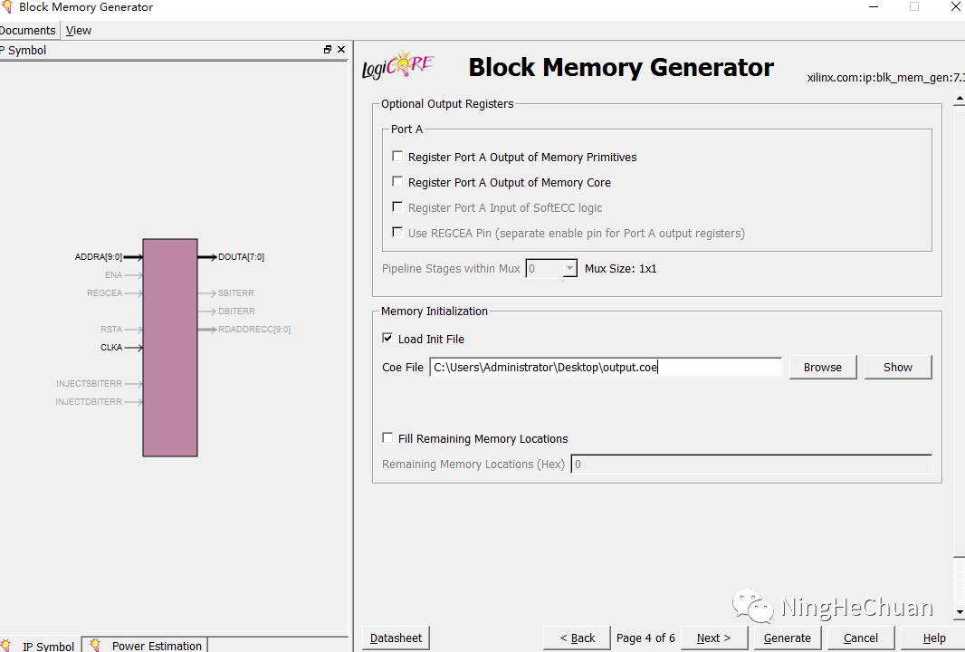 Next,加载.coe数据文件,勾选Load Init File 加载.coe文件,我这里是在桌面上保存着,直接找到选择就好。