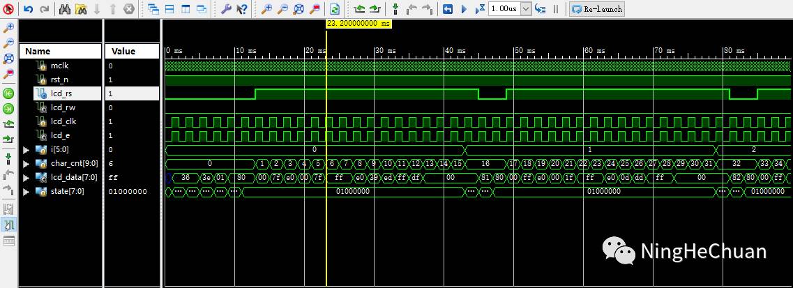 状态机初始化位置 IDLE lcd_data = 8’hzz