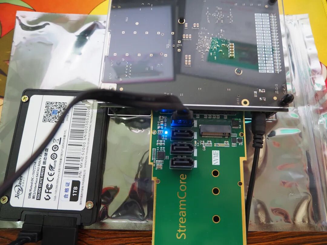 很多人可能会想到通过扩展卡来解决,但现实是:存储接口类的 FMC 扩展卡本来就很少见,同时覆盖 SATA + NVMe 的更是凤毛麟角。