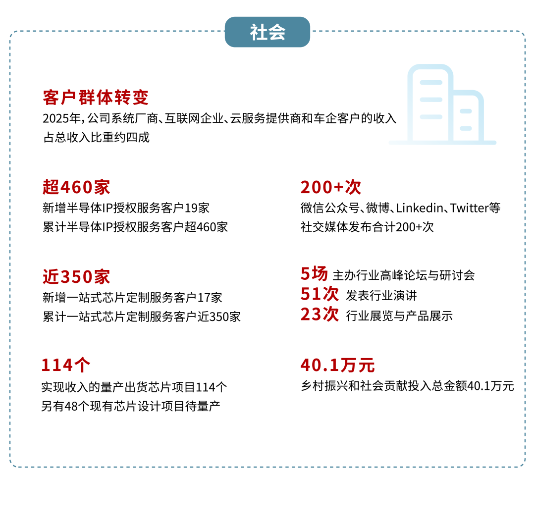 芯原股份正式发布《2025年可持续发展报告》,叙述了芯原2025年在追求经营绩效的同时,积极践行社会责任的工作成果,主动回应利益相关方及社会各界的关注重点。报告围绕“芯”质生产力、智驾未来 · “芯”系安**全两大特色专题和治理原则、以人为本、芯火燎原、关爱地球**四大方面,通过丰富的案例,图文并茂地展示了芯原在公司治理、员工关怀、技术创新、构筑生态、产教融合、公益慈善、绿色运营、保护生物多样性等方面的履责行动和成效。