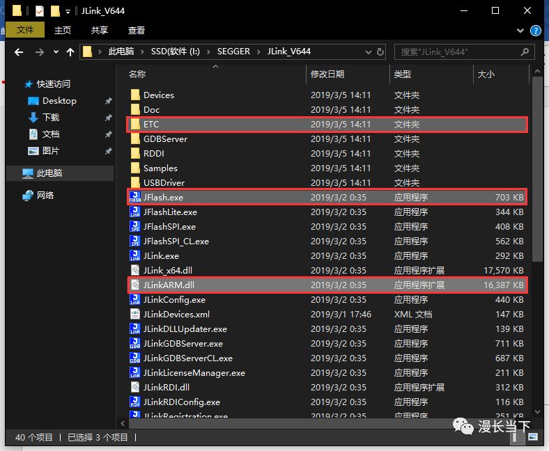 2.进入J-Link驱动安装目录,拷贝下图框选文件到TOOL文件夹中,这些文件就是J-Flash运行需要的东西