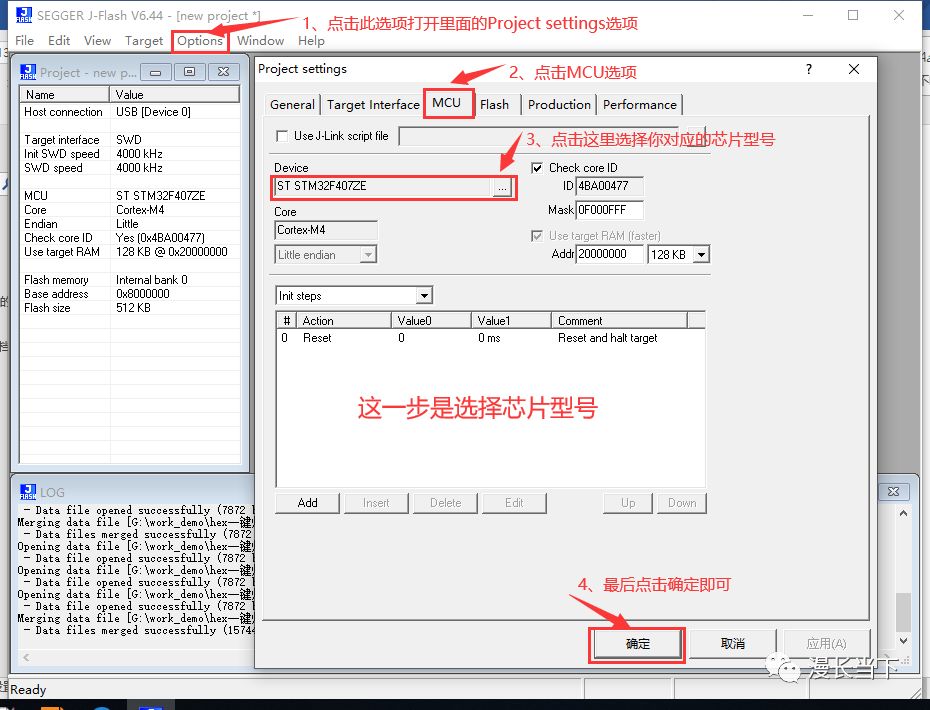 ()J-Link驱动提供的J-Flash工具了,下面我将使用bat批处理脚本配合J-Flash命令自动化的合并两个hex文件并将其烧写到芯片中。