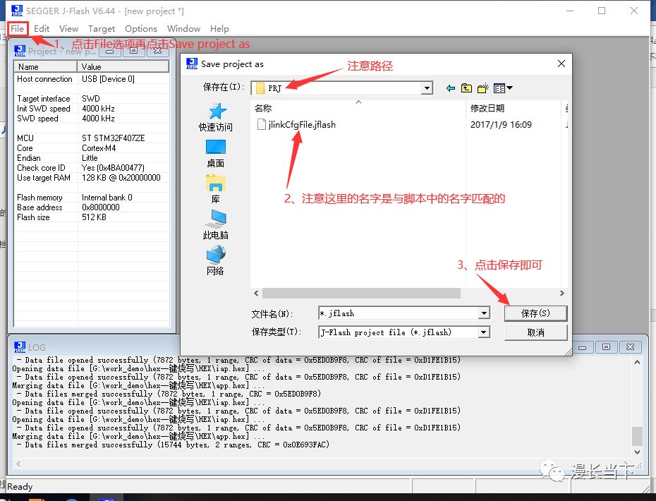 3.创建jflash工程,保存到PRJ文件夹中,操作如下