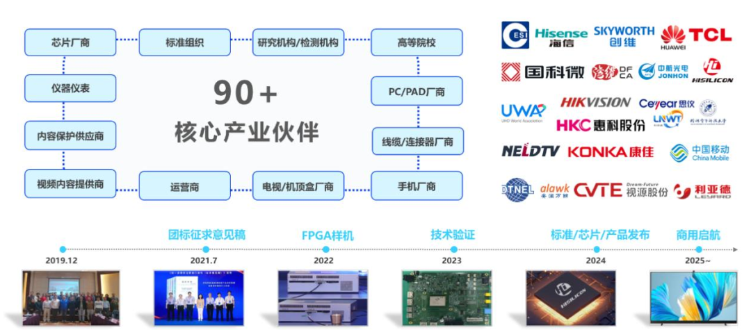 2019年,深圳市 8K 超高清视频产业协作联盟(SUCA)率先成立超高清接口工作组,正式启动 GPMI 技术研发,决心走出一条自主创新之路。到 2025 年《通用多媒体接口规范》系列团体标准正式发布,50 余家头部企业联合背书,标志着其完成从研发到落地的蜕变。