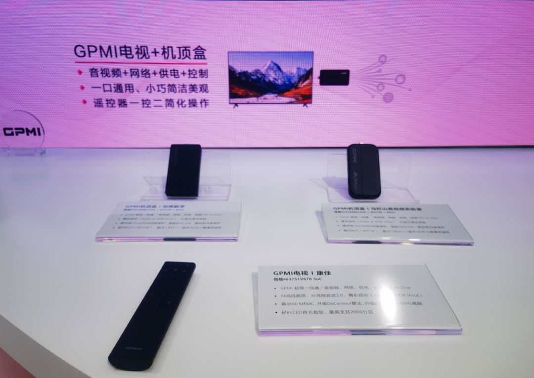 康佳 GPMI 电视搭配创维数字、马栏山音视频实验室的 GPMI 插入式微型机顶盒一体化解决方案,已完成商业落地。