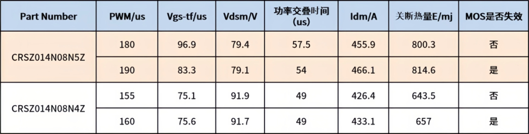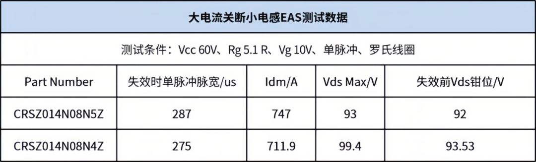 - UIS能力:CRSZ014N08N5Z与上一代CRSZ014N08N4Z 的UIS能力实测数据如下: