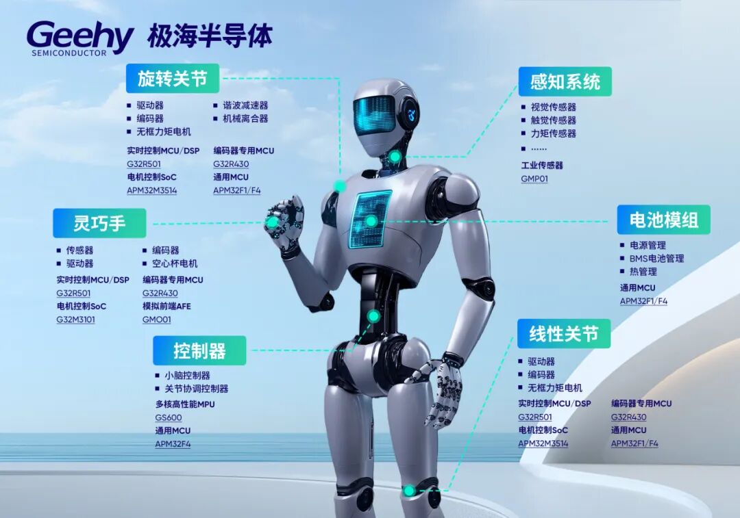 不止于单颗芯片的突破,极海构建有全栈式机器人芯片矩阵及综合解决方案,覆盖机器人从感知、控制到驱动的机器人全链条环节,可为机器人行业提供从核心芯片到完整方案的一站式赋能。