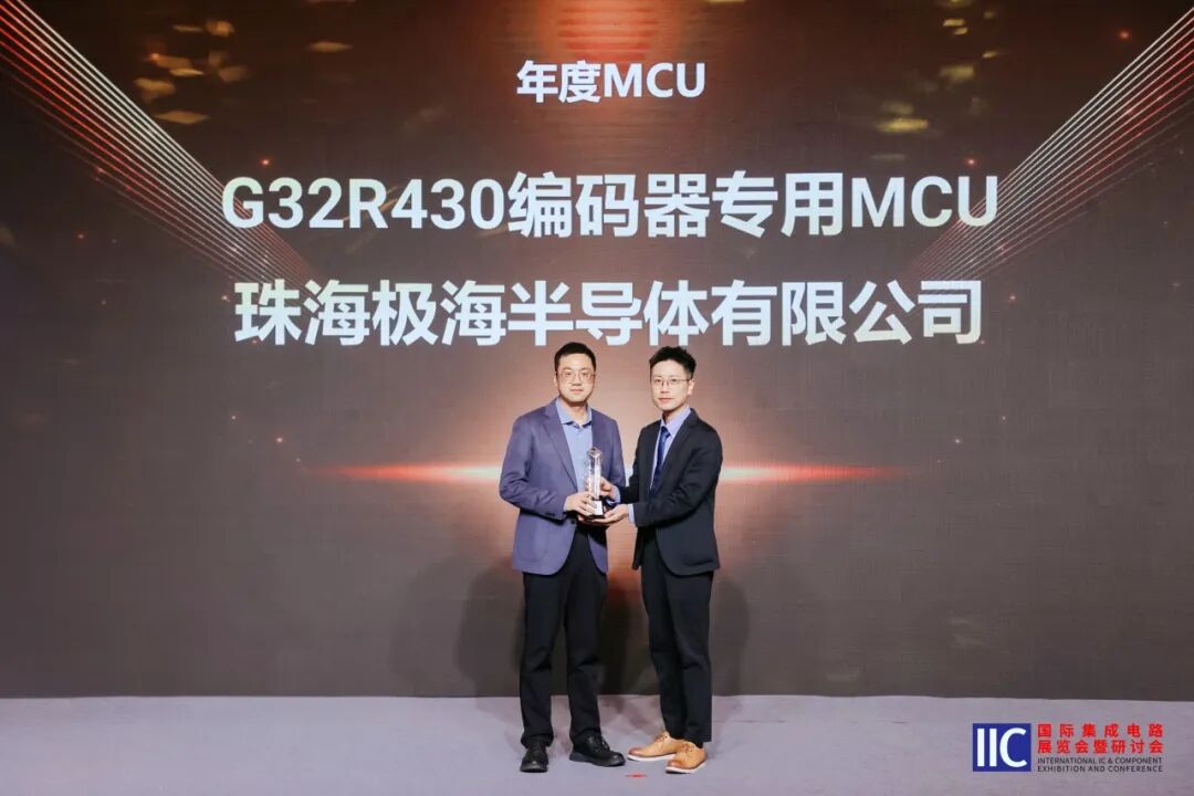 同期举办的中国IC设计成就奖盛典,旨在见证行业年度技术、市场标杆的诞生,是IC设计领域极具含金量的权威奖项之一。本次盛典上,极海G32R430编码器专用MCU,成功斩获“年度MCU”产品奖。