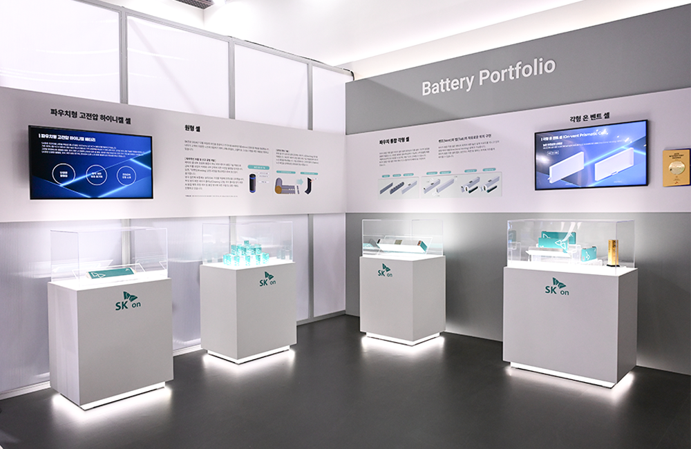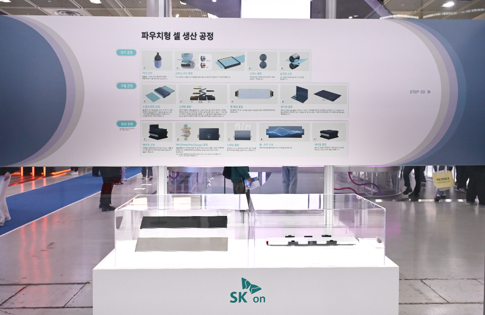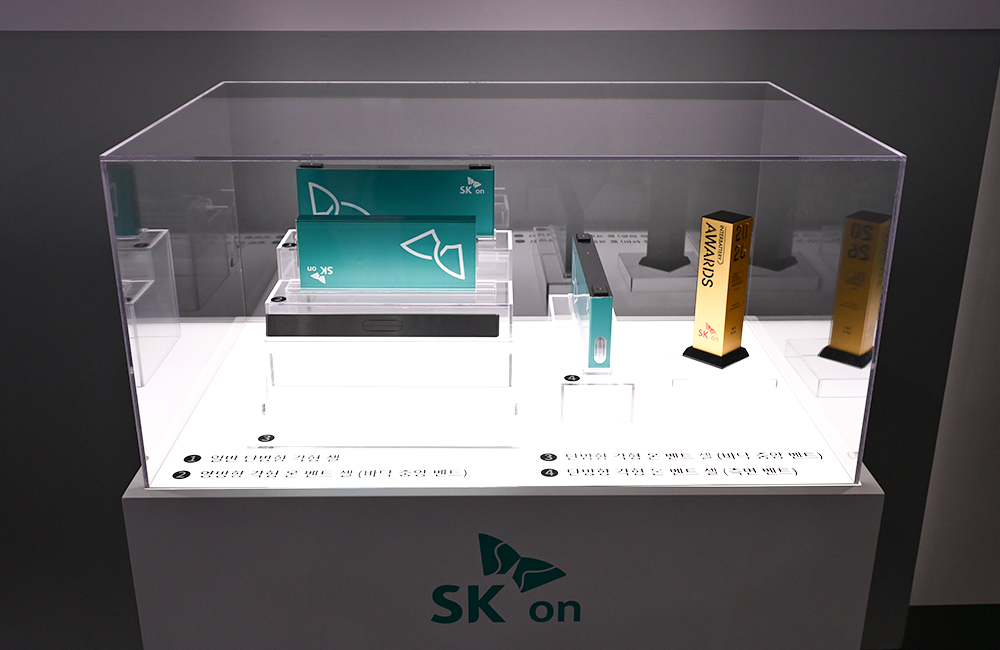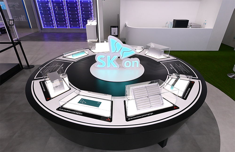 此外,位于展位中央的圆形新品展示区New Brand桌,再次呈现了今年SK On的核心成果:加速全球ESS业务布局的"集装箱式DC Block"、荣获InterBattery Awards 2026的"方形on-vent电芯",以及首次公开的"pouch集成方形电芯"等。