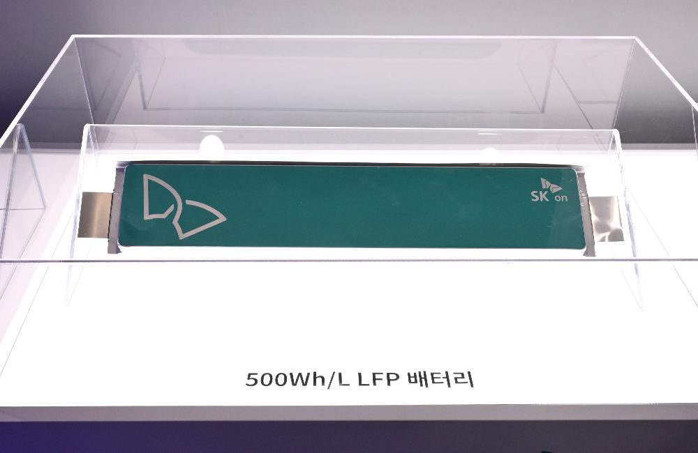 展出的还有SK On正在开发的电动汽车及ESS用高能量密度LFP电池。其目标是突破现有350-450Wh/L的局限,将能量密度提升至500Wh/L以上。通过电极高密度化、优化电芯内部空间、精确控制尺寸等手段,在提升能量密度的同时,兼顾电池寿命与输出功率的改善。