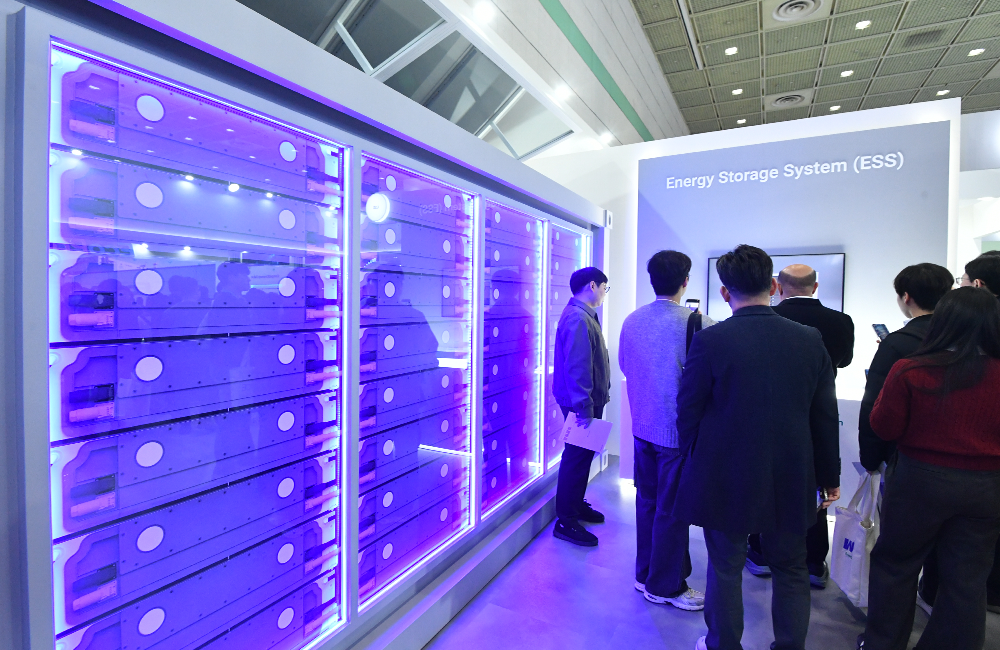 ▲ InterBattery 2026现场,参观者正仔细观摩SK On展出的集装箱式ESS(DC Block)实物模型。
