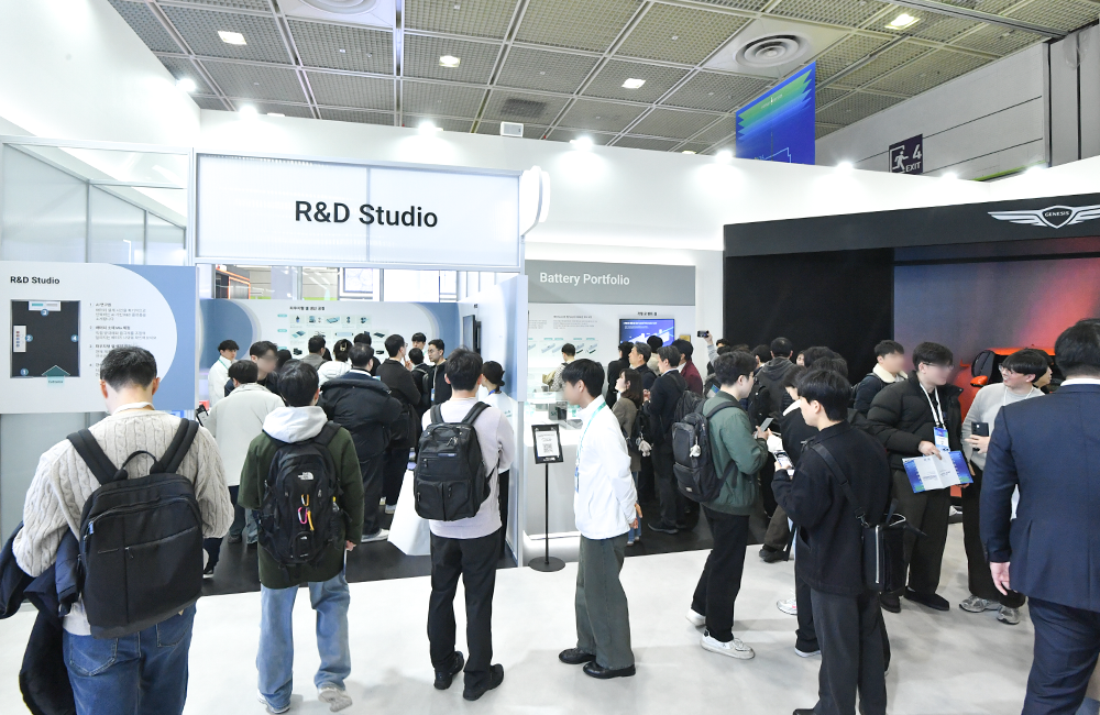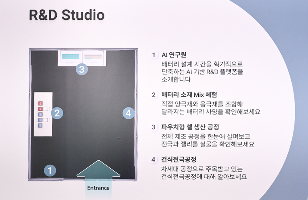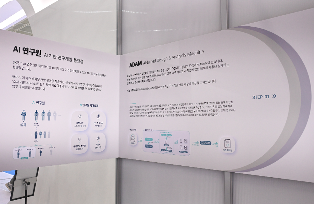 "领先技术"的起点,是一个名为"研发工作室(R&D Studio)"的互动体验区,它将电池从设计到制造的全过程,生动地呈现在观众面前。在这里,SK On的人工智能研发平台——"AI研究员"惊艳亮相。据介绍,该平台能基于性能预测与成本核算提出设计方案,再由人类研究员审核优化,最终确定最优方案。这种"AI与人类协同创新"的模式,旨在大幅缩短电池开发周期,降低试错成本。