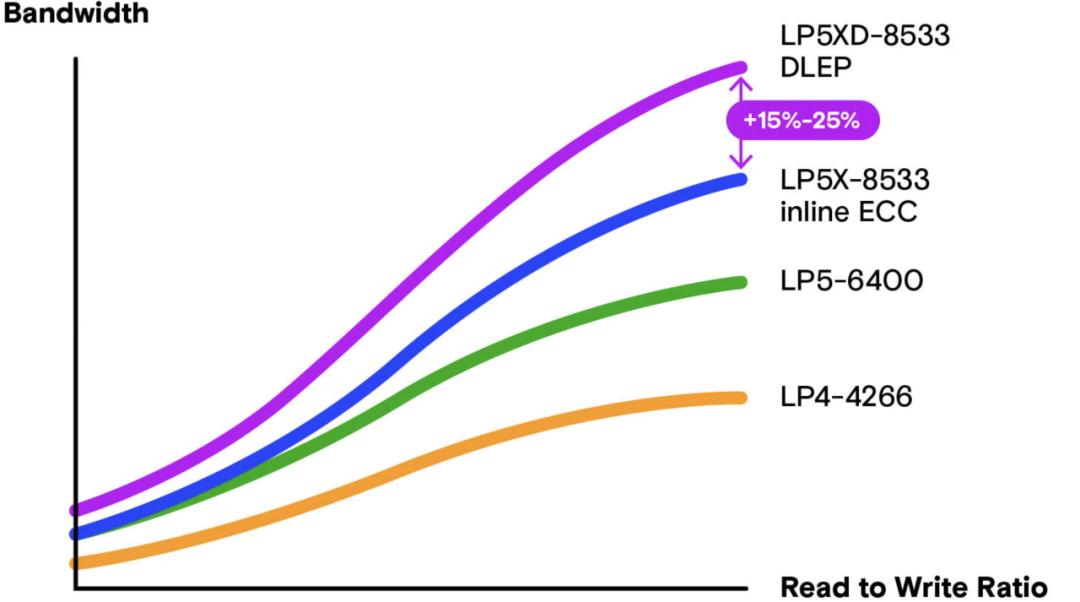 从图中可以看出,与内联 ECC 相比,DLEP 的带宽要增加 15% 至 25%