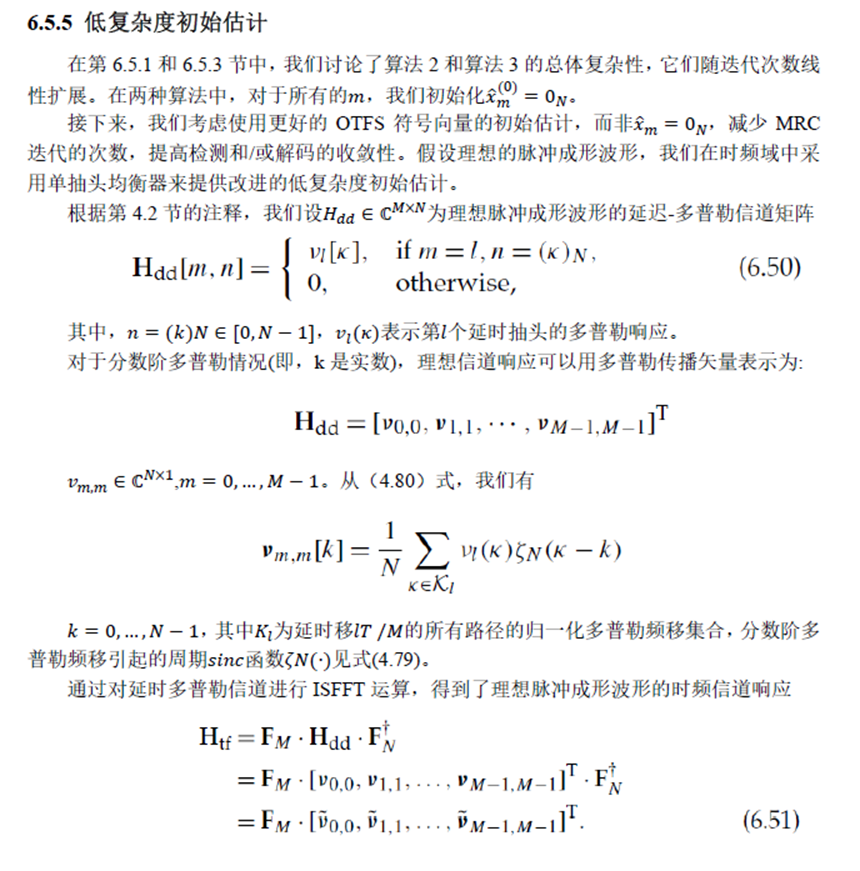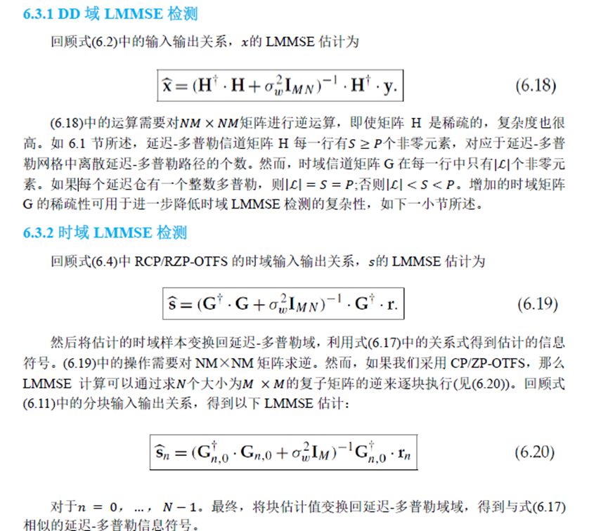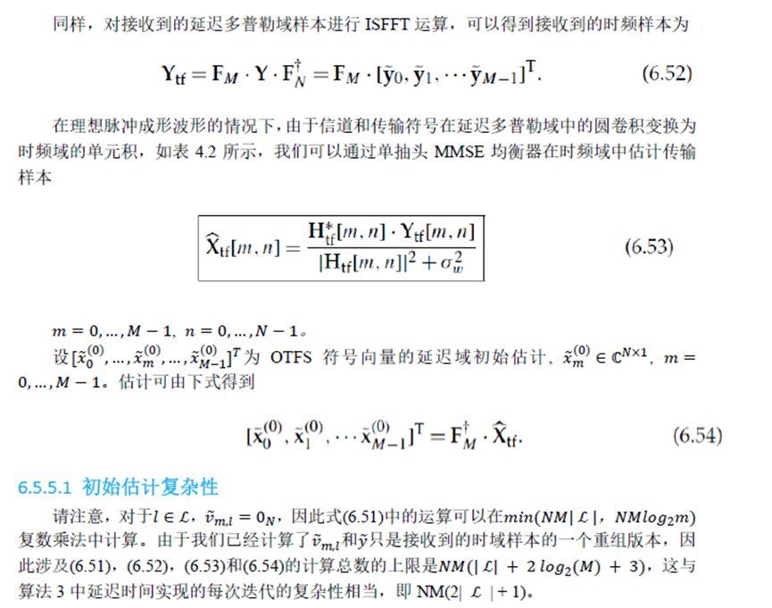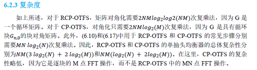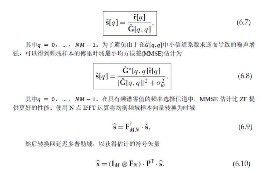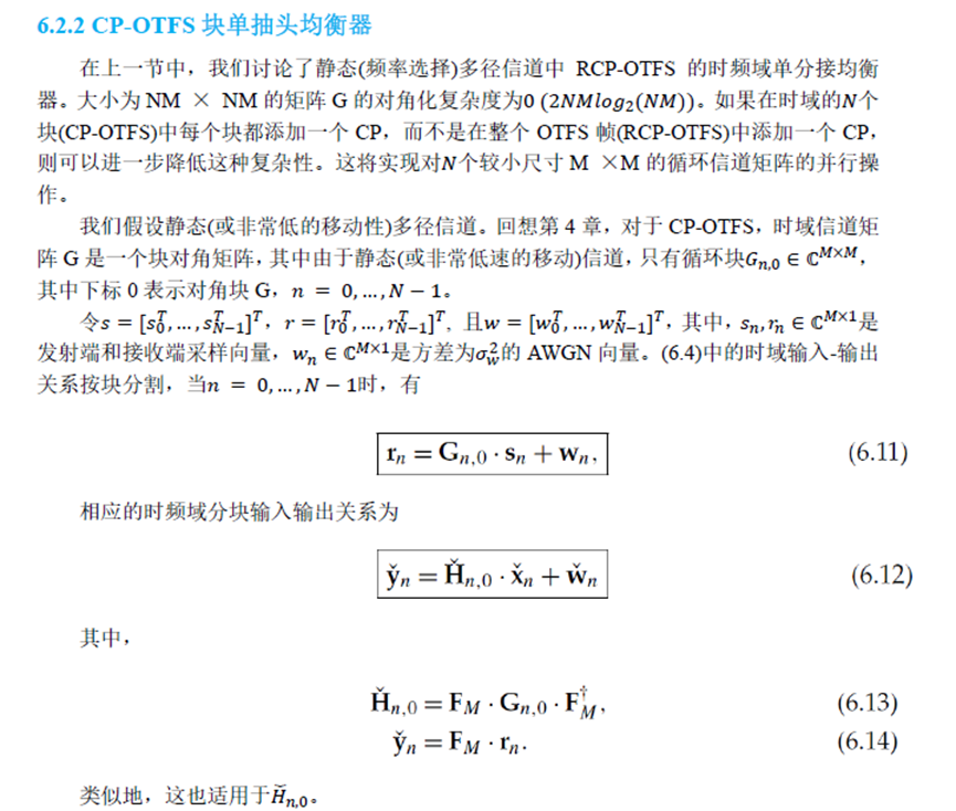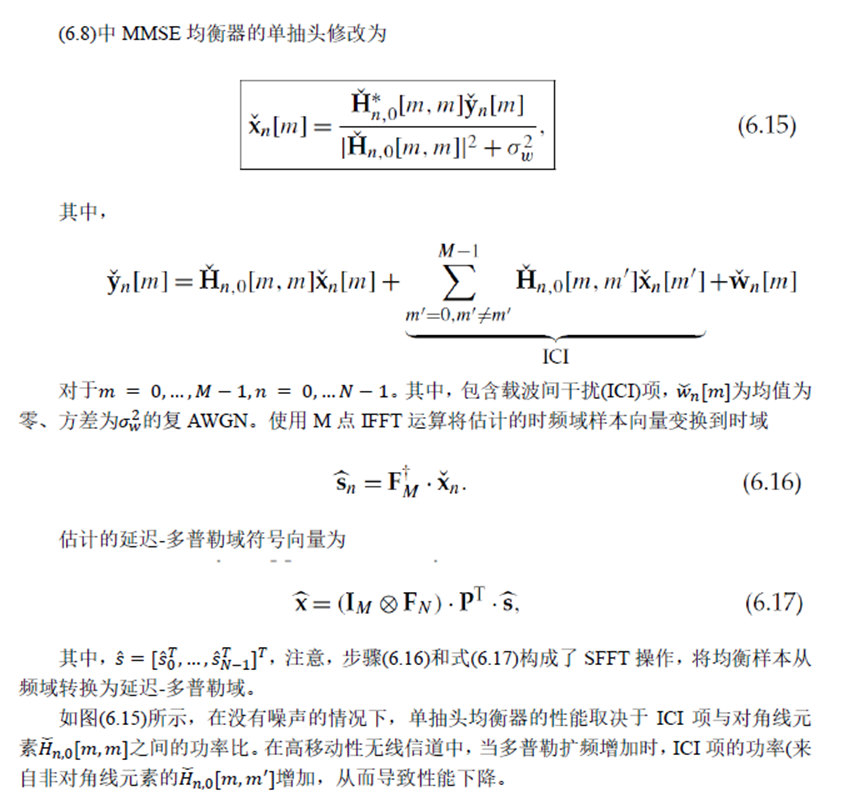 下面我们简单介绍OTFS的单抽头频域均衡,截图来自笔者翻译的《时延-多普勒通信:原理与应用》。