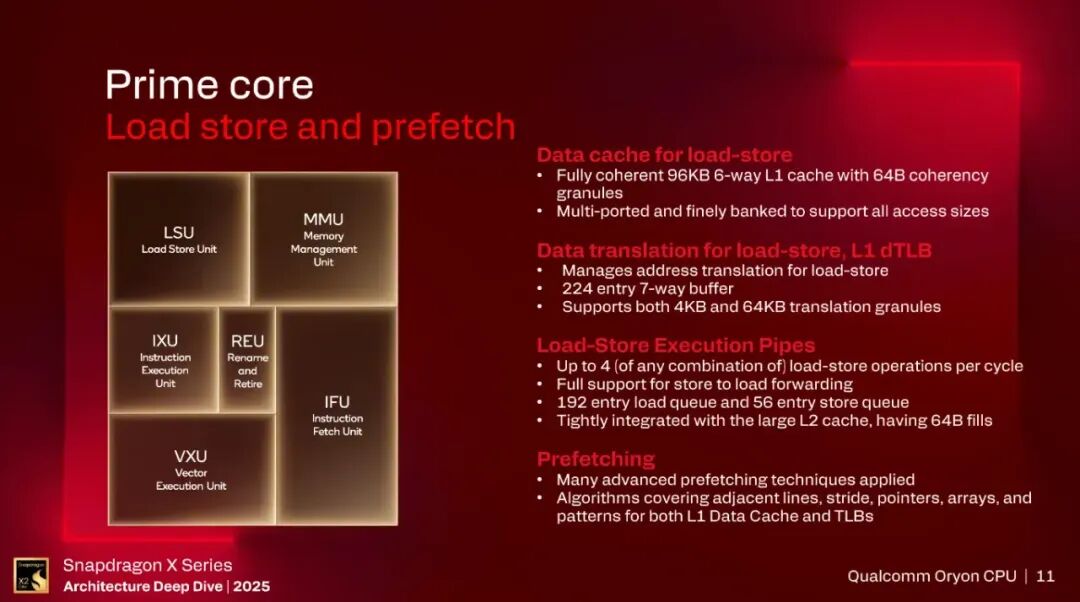 192个load queue条目,56个store queue条目。预取方面支持不少类型的算法,stride,adjacent line等。
