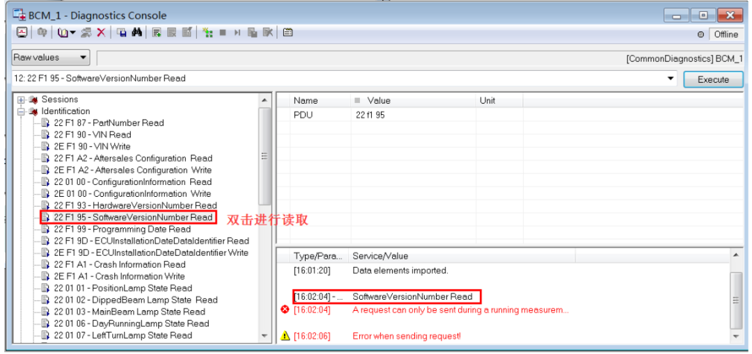 然后就可以正常使用cdd中添加的诊断服务了,只需要在下图的左边栏点击服务即可,有些比如写DID,还是需要在填写需要写入的数据的。
