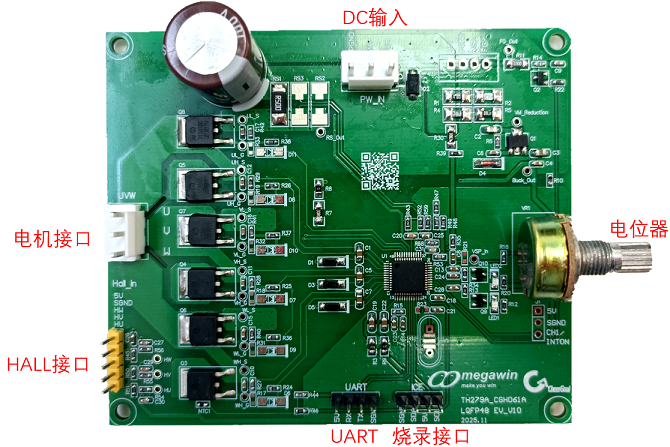 CGH系列EVB评估板通过双核架构**(8051+ MDE) 与分级驱动设计**,在兼顾开发易用性的同时,实现对BLDC电机控制性能的有效提升。其完整的接口引出与多型号配置,使工程师能够快速完成从评估验证到系统开发的过渡,特别适用于对开发效率与稳定性要求较高的电机控制项目。