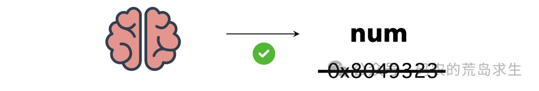 所以并不是说变量a直接指向一块内存或者指向num: