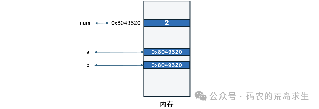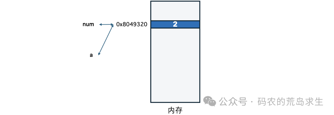 此时a和num都表示0x8049320这块内存中的内容,也就是数字2。