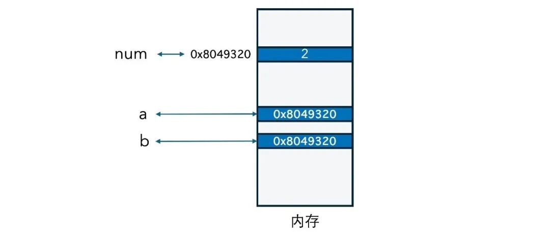 变量a依然是那个变量a,但此时变量a中保存的不再是2这个数字,而是另一个数字0x8049320。