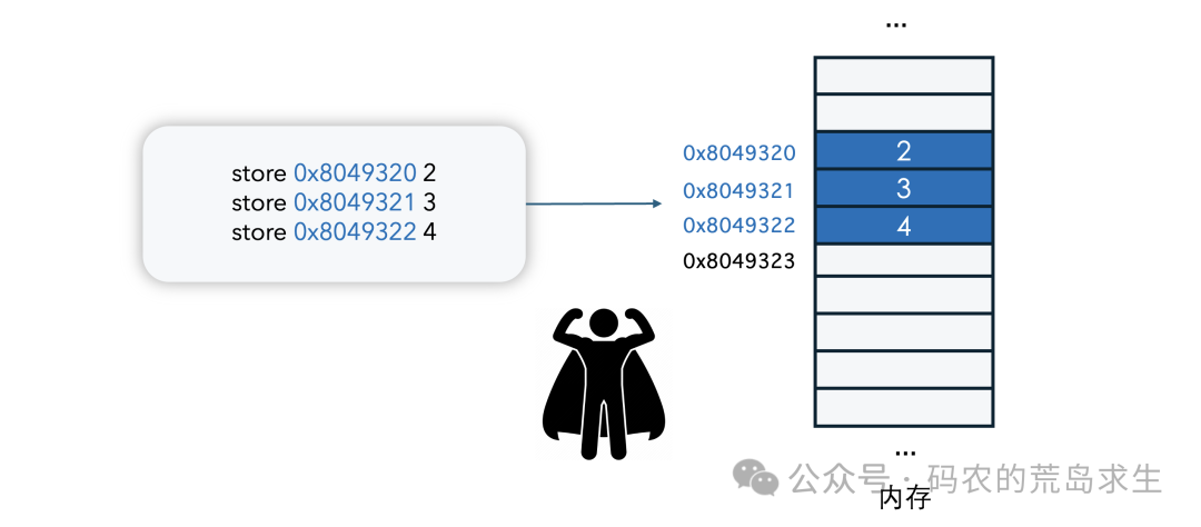 可以看到,利用store指令你可以直接操作任何一个内存地址,也就是直接操作或者控制内存这种硬件,这是一种很强大的能力: