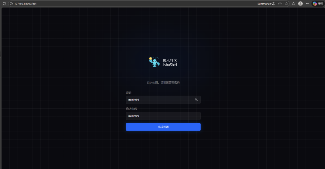 部署完成后,用户通过浏览器即可打开可视化Web管理面板,设置密码、配置模型,即可开始使用。
