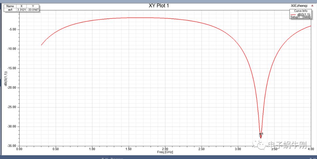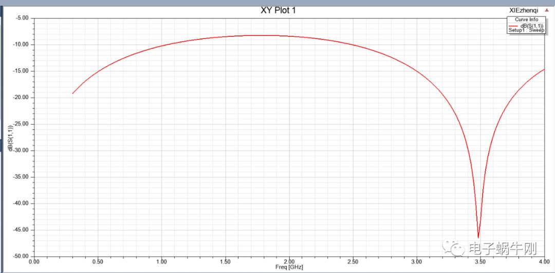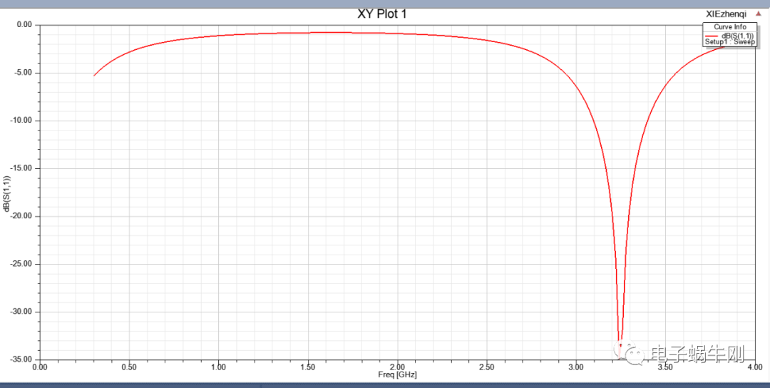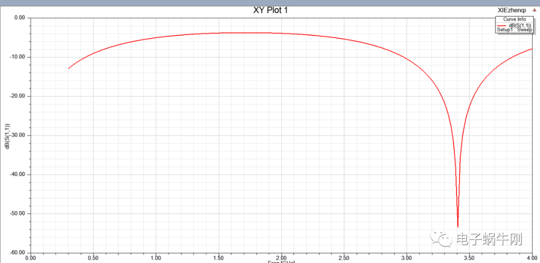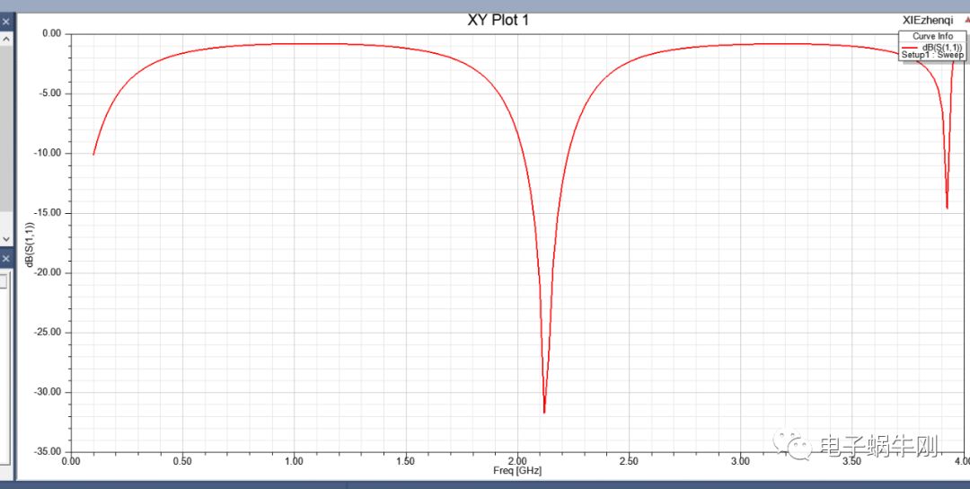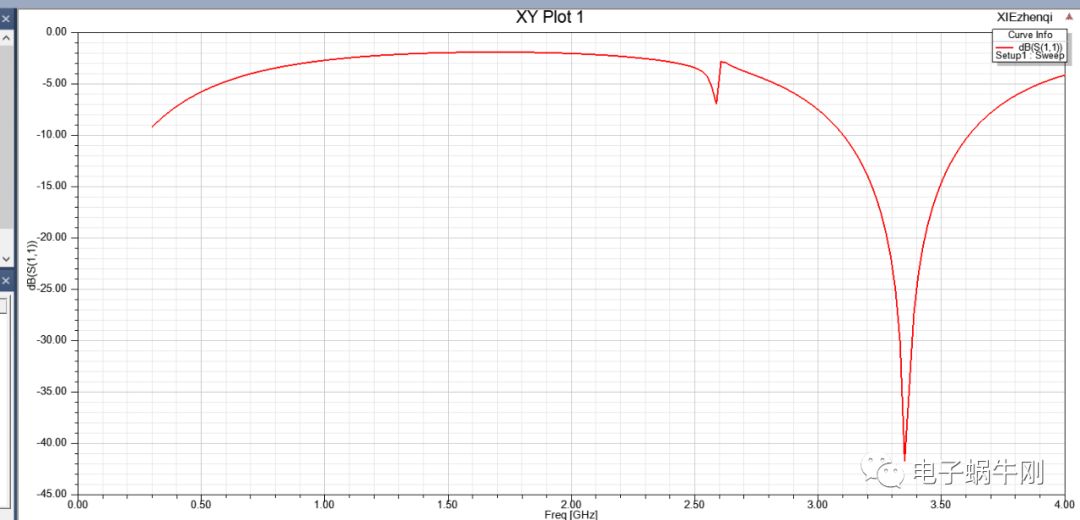 谐振点移动到2GHz。找到了影响谐振点的关键因素,就是中间一段线的粗细。