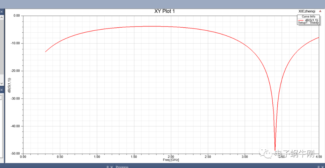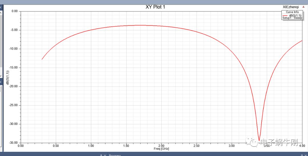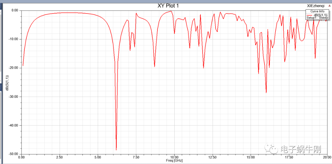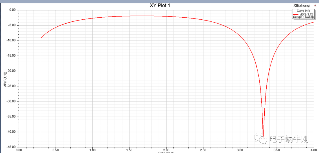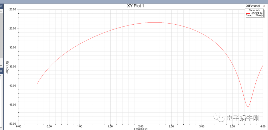 谐振点移动到2GHz。找到了影响谐振点的关键因素,就是中间一段线的粗细。