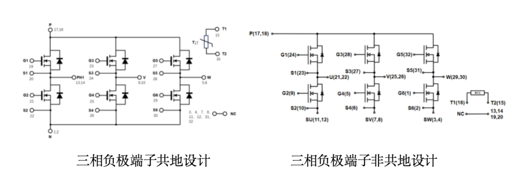 • 模块支持三相负极共地设计,也可支持非共地设计,灵活适应应用设计需求