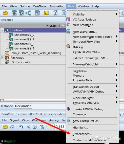 要在Verdi里执行tcl脚本,肯定需要先把控制器调出来。这个很简单,在Tools - Perferences里设置一下就可以: