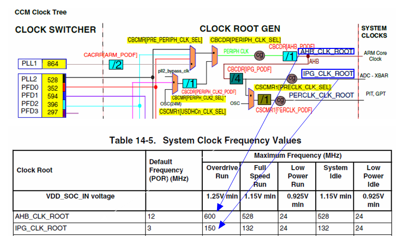 我们以 i.MXRT1060 为例,翻看其参考手册 CCM 时钟模块章节,可以看到普通 GPIO1-5 的时钟源是 IPG_CLK_ROOT、而高速 GPIO6-9 的时钟源则是 AHB_CLK_ROOT: