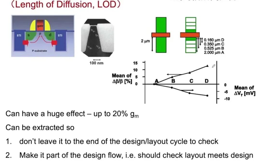 四、源漏间距与沟道长度:电子奔跑的“赛道”公式中的沟道长度L,是源极和漏极之间的距离。L越短,IdSAT越大,因为电子跑完这段路程的时间更短。这正是摩尔定律的核心——不断缩小晶体管尺寸。但L缩短会引发短沟道效应,导致Vth下降、漏电增加。为了抑制短沟道效应,源漏结深必须做得极浅,这就是所谓的“源漏cell pitch”缩小的含义。此外,抬升源漏技术通过在浅结上外延高掺杂硅层,降低接触电阻,从而进一步提升实际IdSAT。