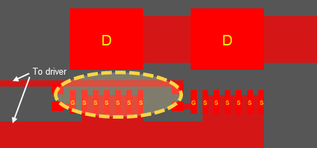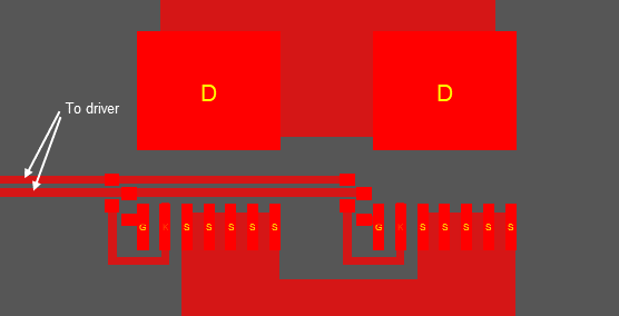 对于贴片式D2PAK封装,器件一左一右放置,右边的器件源极路径就会比左边器件更长。