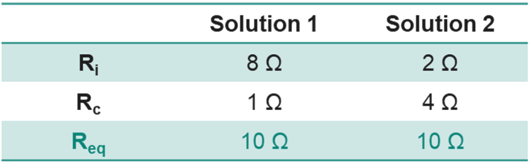 栅极网络配置分两种情况,如下表,等效总电阻为Req\=2*Rc+Ri,两种情况下都是10Ω。
