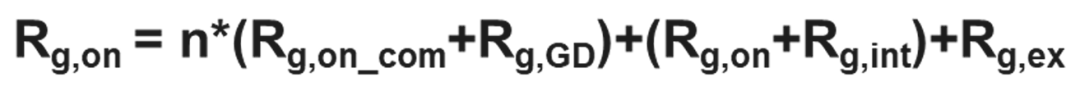 并联的器件使用源极电阻Rg,ex、共同栅极电阻Rg,on_com、独立栅极电阻Rg,on之后,总等效电阻为: